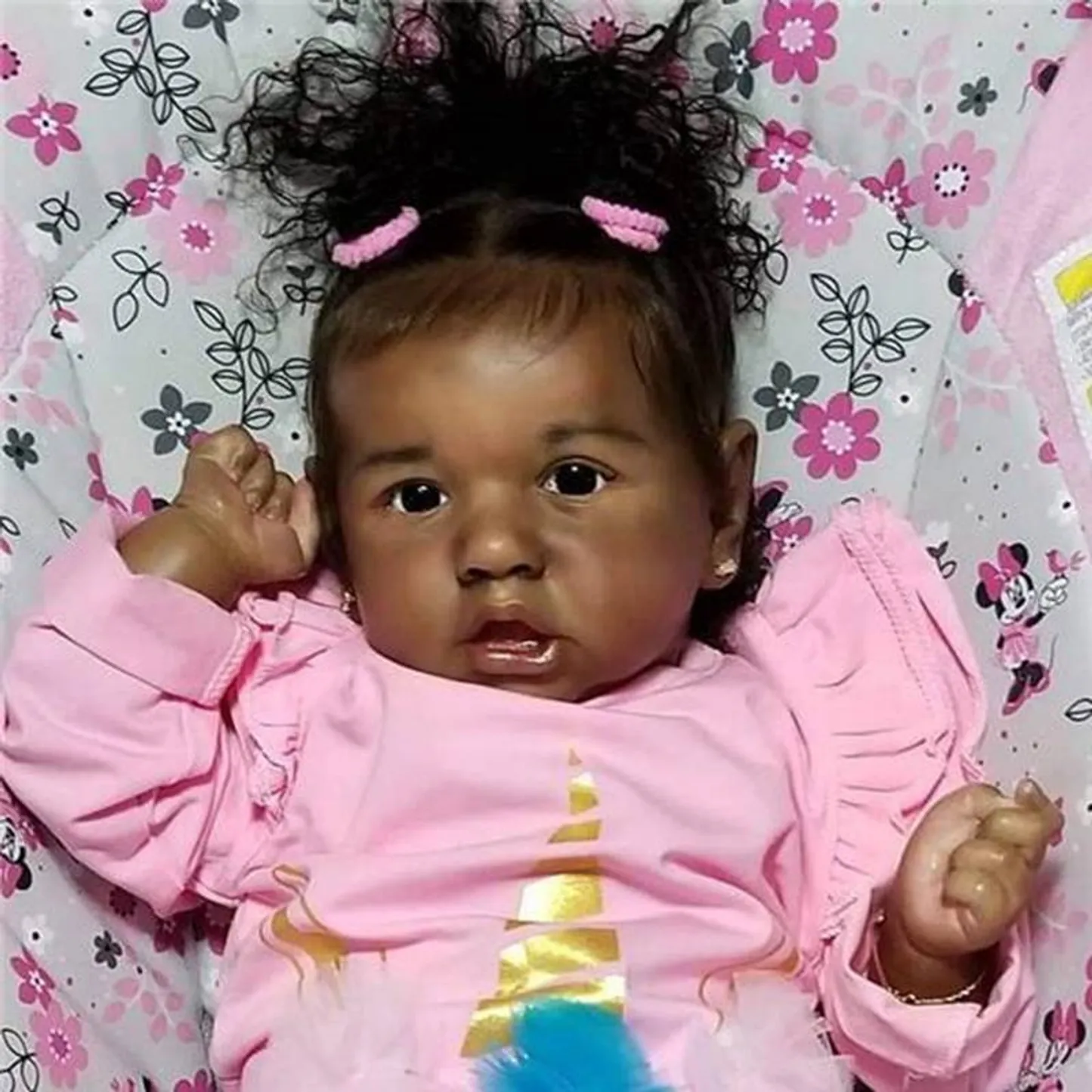 22'' Julie fait à la main réaliste bébé fille Reborn Noir Saskia Série
